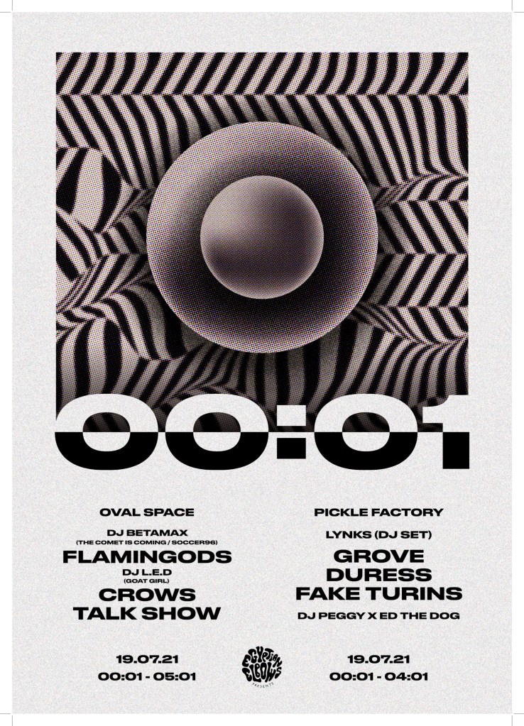 Enter forth London promoters Egyptian Elbows, who offer up a rebirth for live music in the form of 00:01 Festival. The East London hub of Oval Space will offer two stages between it’s Oval and Pickle Factory venues, which will host six live band sets and multiple DJ sets over 5 hours, starting at one minute after midnight on Monday July 19th (actually the Sunday night).