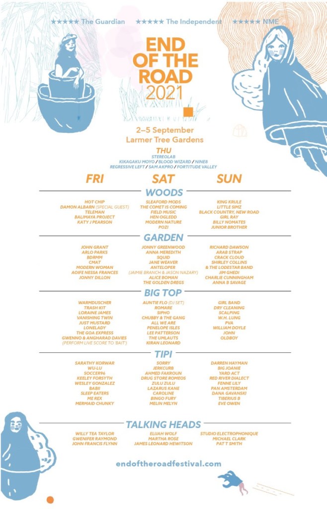 In the end, it seems a lack of security in terms of festival insurance was the key factor to the collapse of festival season in 2021. This week End Of The Road Festival in Dorset will go ahead, boasting a line up heavy with British talent to celebrate their 15th birthday, boldly stepping forward into unchartered – and uninsured – waters to offer festival season a lifeline. Below we offer a preview and a few specials selections of band’s that we can’t wait to see, first of all I’d like to say that you’ll find us at Hot Chip, Little Simz, King Krule, Anna Meredith, Girl Band, Crack Cloud and other sets – but the below are just that bit more of an occasion.