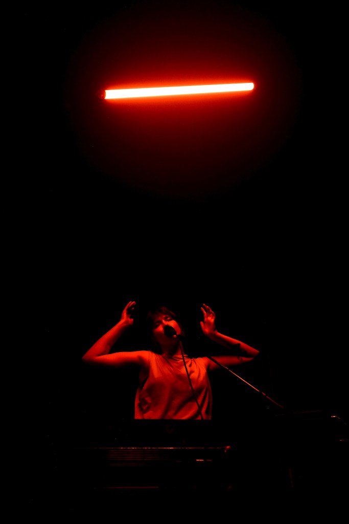 Next up was Jessica Winter, the defining voice of non-commercial contemporary pop music and always easily the coolest person in the room. The commanding bounce of ‘Something Like a Knife’ began to take the room where it needed to get for the headliners. Winter strutted about the stage, slowly shedding layers to reveal several outstanding variations on her effortlessly stylish getup. The progression began with the chic ‘Choreograph’ overcoat to a final bra and suit trousers combo. The introduction of special guest Lynks to the stage to perform their new collab ‘Clutter’ was not a surprise but was of course an utter delight. Their hasty campy choreography was an absolute joy to watch.