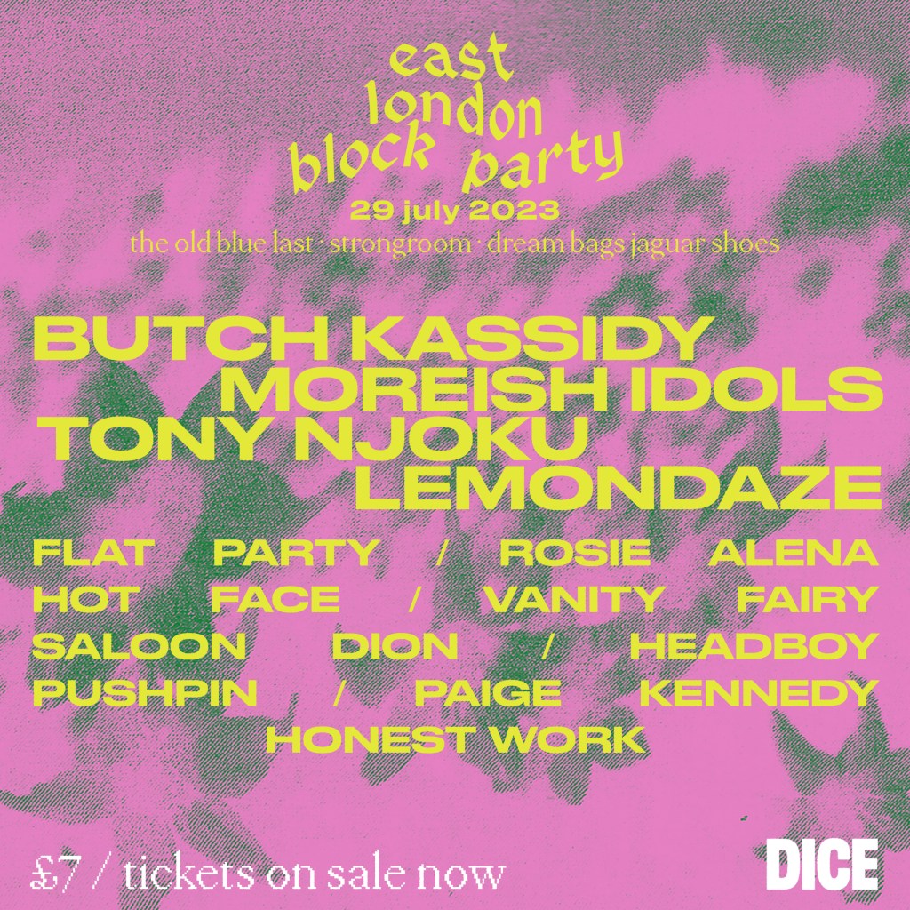 Breaking into the bustling summer festival schedule this year, newcomer festival East London Block Party looks set to impose itself on the calendar with its inaugural lineup. Announcing itself as a “celebration of grassroots music”, it brings together a diverse selection of acts, appropriately eclectic in reflection of the scene’s stylistic diversity. At the top of the bill, the heavyweight post-rock sound of Butch Kassidy plays off against the gentler piano-led jazz of Tony Njoku. Completing the quartet of headliners are Speedy Wunderground’s rowdy recent acquisition Moreish Idols, and fuzzed-out, wall-of-guitar quartet Lemondaze.