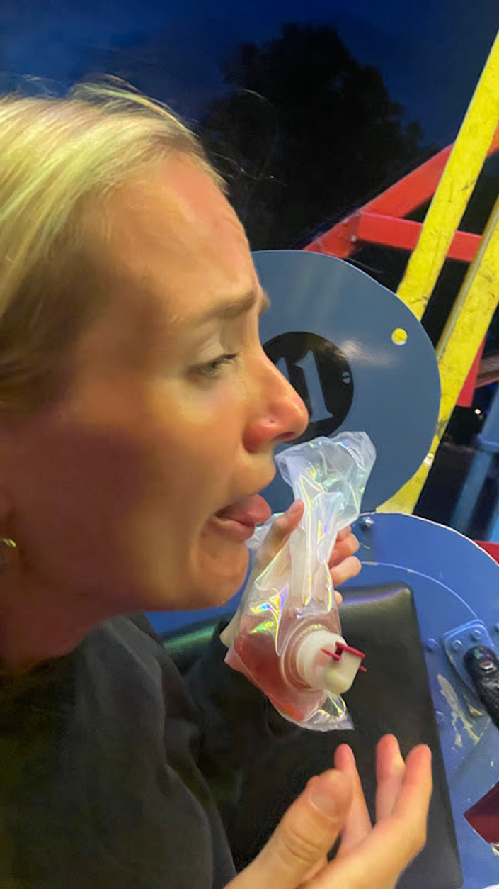 9.15pm – I’ll be honest, we’re back on that damn ferris wheel, this time with me clutching the sangria carton now filled with rosé and Helen on the bag out of the box of rosé.