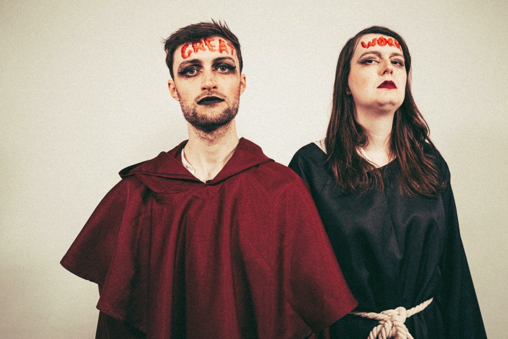 Dubbed by the group themselves as “probably our most unhinged song”, Manchester-hatched, queer outré-pop outfit The Vanity Project’s most recent single ‘Eureka’ grins fanatically. With gnashers bared in glorious delirium, it is slick with viscous confection and glittery iridescence. Within this latest single release from their upcoming debut album ‘We Never Should Have Come Here,’ the duo seamlessly squeeze an impressive range of structural shifts into a relatively short track, traversing a circus ground of maximalist art pop and frenetic experimental synth rock that evokes ‘Man Alive’ era Everything Everything roused with Cardiacs mayhem.