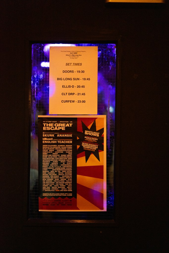Last Wednesday, the Hard of Hearing team descended eagerly upon The Old Blue Last for an evening of top quality live music, showcasing three buzzy, Brighton based acts set to feature on The Great Escape lineup this year: big long sun, ELLiS·D and CLT DRP. A partnership between Hard of Hearing, TGE and Ticketmaster, the show served as the official pre-party for the Brighton showcase event, and an exclusive first taster of the talent that festival attendees will be privy to on the shorefront later this week. With a beer and camera in tow, we settled into the bustling boozer for a thrilling mid-week musical excursion.