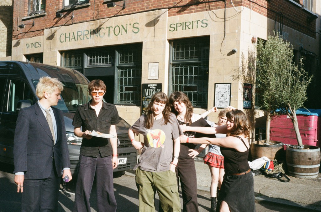 With a precocious flair for sprawling, maximalist compositions and an electric live energy, Man/Woman/Chainsaw have rapidly become one of London’s most in-demand live bands. Since forming in Sixth Form, the band have continuously evolved into a formidable six-headed beast, most recently releasing their latest single ‘Adam & Steve’ in May off the back of their April headline at London’s Scala. As they prepared to take the stage at the relatively intimate Sebright Arms for the venue’s inaugural SON Estrella Galicia takeover, we met up with bassist/vocalist Vera Leppänen, drummer Lola Cherry and guitarist Billy Doyle, to talk fashion tips, favourite condiments, and the band’s rigorous new writing regime.