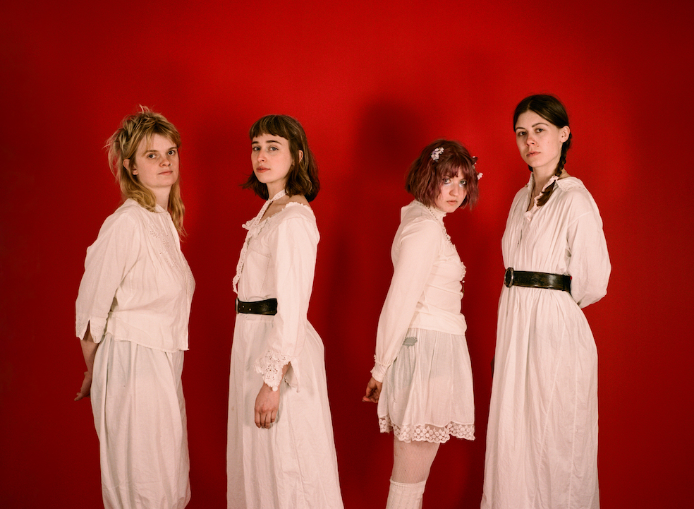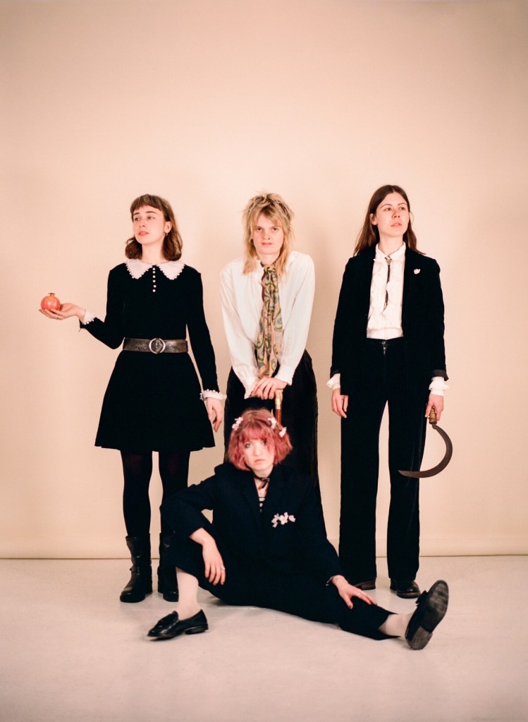 The New Eves arrived explosively. A few months and a few gigs into their existence, they played one of the Windmill’s Cello Sunday nights and immediately became a must-see band on the scene. Since then, the Brighton quartet have put out a string of singles – debuting with ‘Mother’ on ‘Slow Dance ’22’ – and won over countless fans with their electrifying live set. Formed in Brighton, the band consists of four songwriters, Nina Winder-Lind (cello, guitar, vocals), Violet Farrer (guitar, violin, vocals), Kate Mager (bass, vocals) and Ella Oona Russell (drums, flute, vocals). They work at the intersection between punk and folk as if it is the most natural combination in the world, reigniting those traditions for the 21st Century. With debut album ‘The New Eve Is Rising’ releasing this Friday, we spoke to the group about the relevance of this musical fusion and the sprawling collective philosophy that has shaped The New Eves’ music so far.