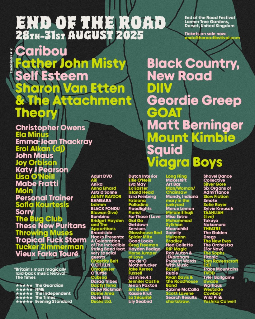 This year’s End of the Road is full of delights up and down the bill, and we’re not anticipating much time to catch our breath in between each set. There will be clashes, plans will change, and there’s always a few secret sets to factor into the mix, yet we can but try to prepare our Plans A B and C in advance. At Hard of Hearing, we’ll be back over the next few weeks weeks to zoom in on a few favourite artists on the bill, but until then, you can check out the full lineup and, if you need, scout out for any resale tickets over at https://endoftheroadfestival.com/day-stage-splits/