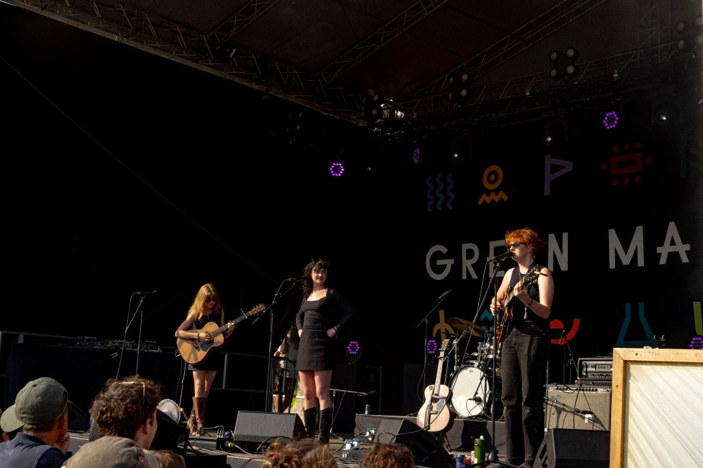 Fresh off the deserved praise heaped upon them for debut album ‘Now Would Be A Good Time’, released in July via Jagjaguwar, Australia’s Folk Bitch Trio began their European tour this August at Green Man festival, where their angelic blend of three-part vocal harmonies, deft songwriting and relatable lyricism provided one of the weekend’s highest, completely shutting down the Walled Garden stage that bravely attempted to contain them. Huge fans here at Hard of Hearing, we decided, on a bleary Sunday-of-a-Festival Morning, to have a quick chat with Heide (they/them), Jeanie (she/her) and Gracie (she/her), and learn all about… their overnight oat recipe?