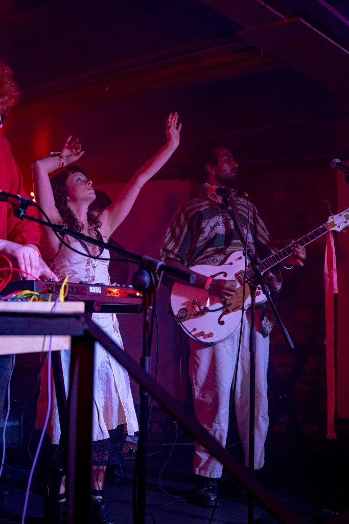 Across the road and back to FAC251, seven-piece psychedelic cosmonauts Mandrake Handshake bring a lysergic fever of fractal grooves and heady freak outs, delivering one of their strongest ever performances to a warmed-up crowd chugging zealously on warm Stellas from plastic cups. Lead guitarist Row Janjuah even leaps into the pit during ‘Time Goes Up’, and the Oxford via London group’s infectiously hedonistic, sweaty elation sets the tone for the rest of our evening.