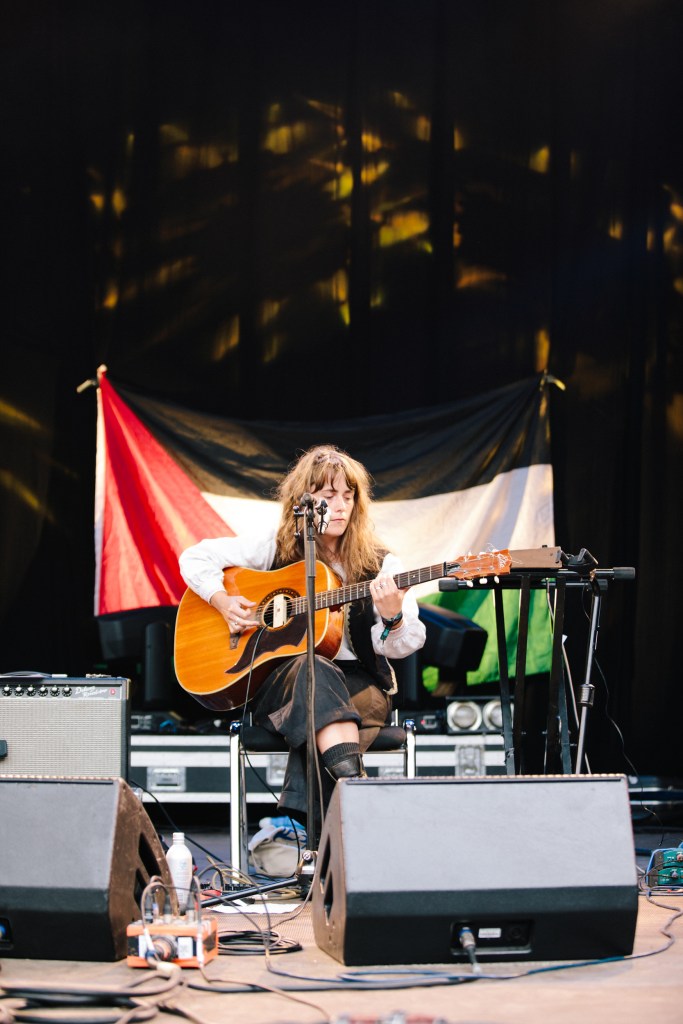 After all this, Sunday kicked off at a much-needed slower pace. Though stylistically opposite to the Viagra Boys set of a night before, Shovel Dance Collective sustained the message of support for Palestine and acknowledgement of Britain’s responsibility for its people’s suffering. After The Mary Wallopers’ ejection from Victorious Festival the week before over their displaying of a Palestinian flag, it felt particularly vital to have an independent festival like End of the Road to platform artists actively supporting that cause. Shovel Dance’s powerful folk adaptations created spaces of contrasting poignance and tranquility.