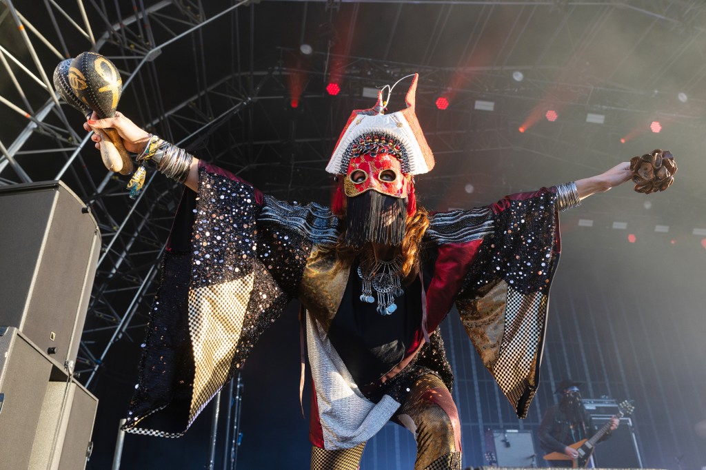 We cut from the rave back to a hippy freakout, Broadside Hacks bringing together a collective to celebrate The Incredible String Band in a splendid psych-folk odyssey at the Garden. This rolled into the psychedelic carnival from fuzz deities Goat over on at the Woods Stage. Returning after their rain dance back in 2016, the Swedish sorcerers this time brought glinting orange sunshine with them for their prismatic psychedelic space shuttle ride. Forever one of the greatest live acts on our planet and possibly across the universe.
