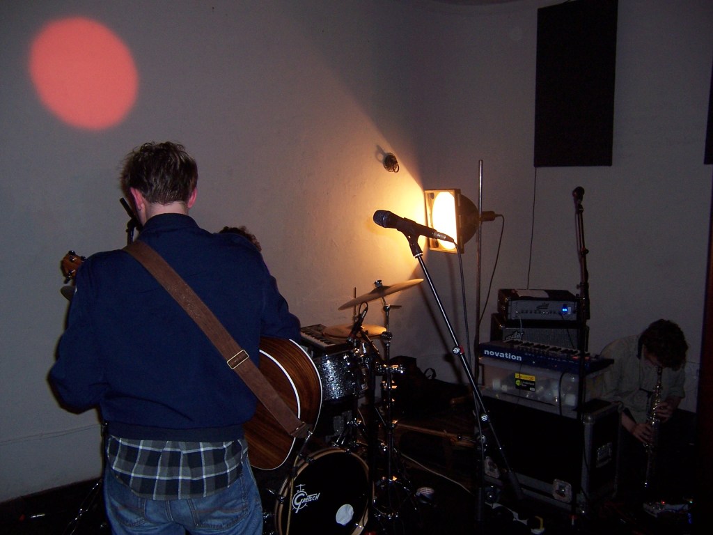 His instrumental backing brings new meaning to the term ‘power trio’. Unlike many other experimental instrumentalists who are surprisingly formulaic in their application of the term, they never repeat an idea twice just for the sake of it. At intervals in the setlist, the drummer gently taps bells hung from a string, triggers samples on his Akai MPC, and intermittently surging onto his drum kit with dramatic crashes. The drumming brings an element of slowcore to the music, often using a driving beat switch which invokes in particular the second half of ‘Sunglasses’ by Black Country New Road, but also wouldn’t sound out of place on a Duster record. Completing the trio is a keyboardist, alto saxophonist and backing vocalist. He too refuses to rinse and repeat: a standout moment was a sax freakout during which he processed the sound through a myriad of effects, creating a kind of free-jazz cacophony.
