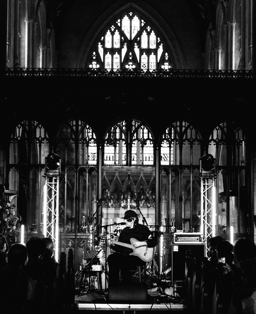 Our festival begins with alt-pop experimentalists Silver Gore, who open the intimate downstairs space at Clwb with a set that you could easily see scaled up to a later set upstairs or beyond in the future. Forty-five minutes after checking into our hotel, we’re watching one of the breakout acts of the year tear through wonky synth-led pop songs in a dingy basement with a very reasonably-priced Clwb Tropica in hand. It’s my first time at Sŵn and before the first set is through, I absolutely get it. It’s then over to St John’s for Gruff Rhys, one of the important names in the history of Welsh music. Given that the Super Fury Animals reunion shows sold out almost instantly, the opportunity to see him in the relatively intimate and absolutely beautiful settings of the Grade I listed building isn’t missed by many. Rhys plays solo and exclusively performs his Welsh language material, including plenty of this year’s wonderful ‘Dim Probs’ and the odd SFA deep cut. The contrast of first two acts, an upstart in a basement and then an icon of Welsh counterculture in one of the most breathtaking buildings in the UK, feels like a perfect introduction to the depth that the festival has to offer.