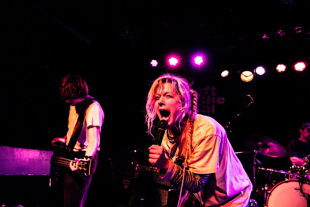 In fact, it’s a weekend with no shortage of innovation from the Emerald Isle. The sheer amount of Irish bands on this line-up shows that the country’s current indie boom is in full swing. Drawing on its rich folk tradition with 19th century trad tunes, haunting Pogues covers and fiery originals, Madra Salach are brooding and momentous. Switching from dark, ponderous drones to triumphant drum-battering surges, their set, put in crude terms, resembles the vocal passions of Fontaines D.C, but if it was reimagined by university history lecturers and archivists. Irish folk melodies were also felt during Pebbledash’s set at 160k Ballroom. Singer Asha Egan McCutcheon’s pristine vocals, clear as water, glide above sumptuous, yet rough-edged dream-pop – it’s a music that offers a soothing wave of crystalline comfort to round-off our Saturday night. Drawing from a different tradition entirely – the ‘post-hardcore’ tradition, shall we say – Kissing On Camera earlier that same day were more of a jolting wake-up alarm. Servicing their crunching emo with playful indie colours, rather than channeling some of the genre’s more worldly existential preoccupations, their lyrics speak rather to the painful mundanity of bad days, or ‘the best part of the week’. A meme-y Bon Jovi shirt and the introduction of one song as “’Angels’ by Robbie Williams” only adds to the their charm.