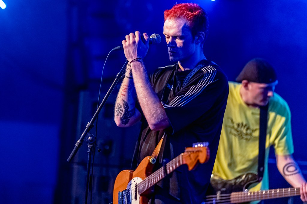 Like I said, there’s a lot going on. Chats with fellow festivalgoers soon reveal that everyone’s experience is unique, rich with unexpected discoveries and new names. Like, we didn’t plan to see Irish quartet Bleech 9:3. We were just sheltering from Storm Benjamin nearby at an eetcafe with some frites, at the right place and the right time. Arriving with a fair chunk of your bog-standard ‘buzz’, and adopting the gaudy nu-metal drip of Romance-era Fontaines (the backwards cap is a bold statement), we arrive just in time to see them blast out new single ‘Ceiling’. And what a writhing, charging warhorse of blitzing indie-grunge it is too, setting itself in the current wave of Wunderhorse-inspired heart-on-sleeve rock bands steadily filtering through from the capital in recent months.