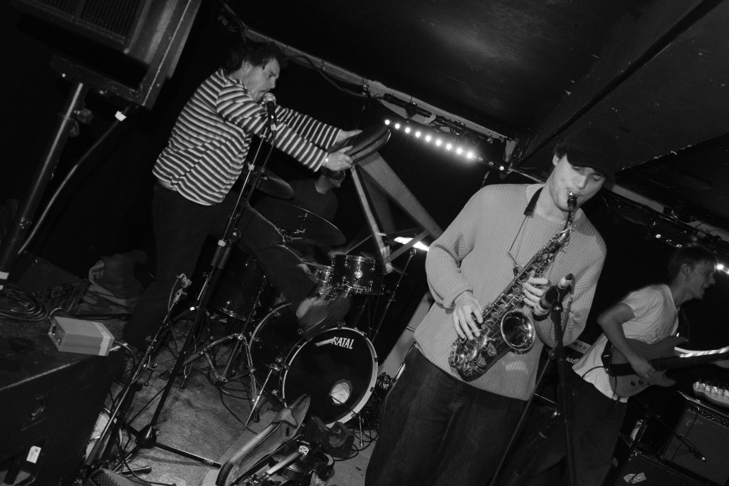 There is a restless interplay of rhythm and restraint throughout the set. The percussion shifts between drive and grounding, while the bass reverberates with a steady pulse. ‘Loaded False Electro!’ arrives as a moment of release, an outburst of sound where the saxophone weaves a melodic line through the dissonant grit of guitar, serving as a demonstration of controlled chaos.