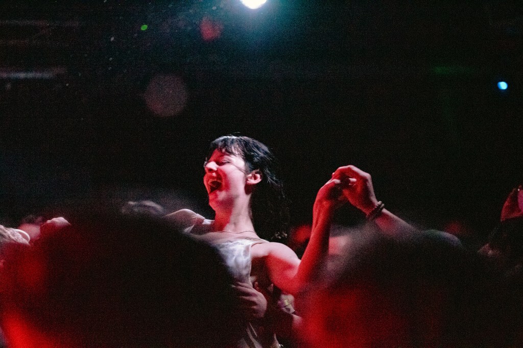 And the fever continued during the climax of our evening at TTSSFU, one of the festival’s handful of ‘headliners’. Peter from casual smart had managed to convince lead vocalist/guitarist Tasmin Stephens to come on stage in a bright blue Cardiff City hoodie and shout “Come on you Bluebirds!” before the Exchange becomes Bedlam. Throughout the set, and, at odds with many of the immaculate shoegazing cuts in the set, the moshpit milieu enjoys more surfs than a summer’s day at Bondi Beach. “This is the stupidest gig we’ve ever done. Normally no one moves at all, but here you’re moving a little too much”, Tasmin confesses through a beaming smile. And after a swirling, tremendous rendition of ‘I Hope U Die’, and this writer’s first ever crowd surf, that’s it. One more beer. Kebab shop. Outer Town? More like Outer This World.