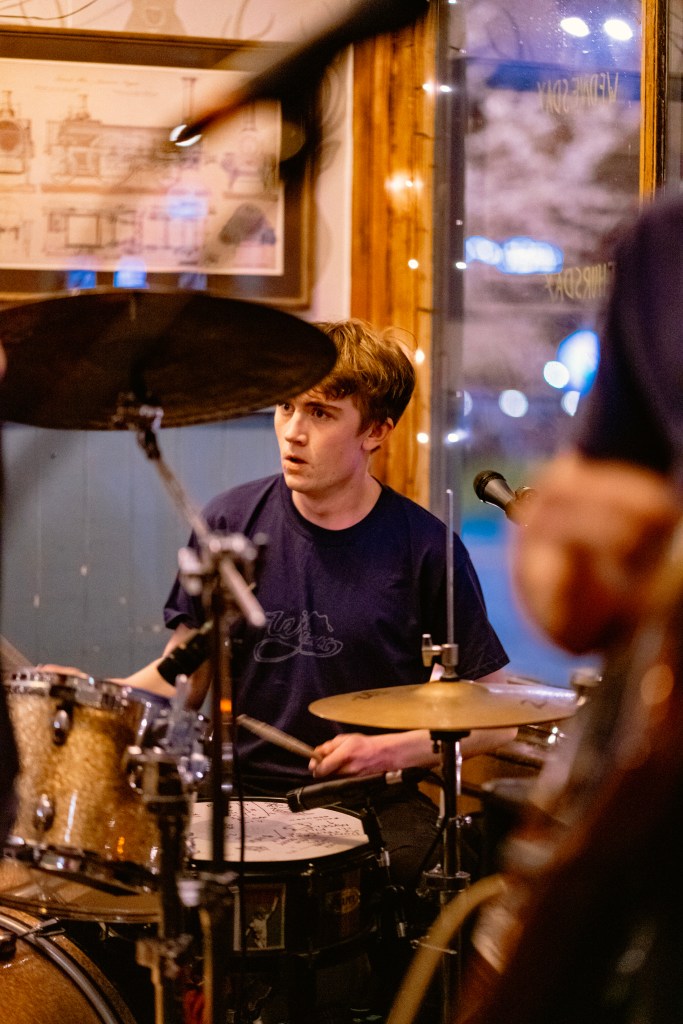 Back to the Bristol scene, our desire to uncover some newer discoveries leads us to Shrink. Someone tells me later it’s their second gig, which is hard to believe considering the coherence of their performance. (Although also easy to believe given the bashfulness off their on-stage presence.) Pitching the tousled, soaring vocal acrobatics of Dove Ellis against a backdrop of classic, heart-on-sleeve alt-rock anthemia – think Sam Fender, Jeff Buckley, or Radiohead – there’s wailing Les Pauls and a bass player sipping Lucozade sport too, to help him maintain high levels of performance, let’s assume. Keep an eye on them, we say, by this time next year you might well have heard a lot more from them.