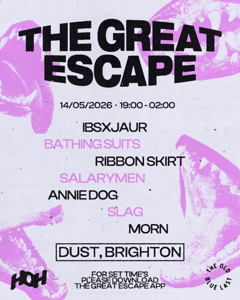 With less than a month to go before this year’s edition of The Great Escape festival, we are thrilled to announce the return of our Hard of Hearing stage – produced this year in collaboration with the Old Blue Last – and to confirm the details of its lineup. The Brighton festival sets the tone for the future of music in Britain and globally, featuring an international set of acts across genres representing the vanguard of contemporary music. Running across a ridiculous number of venues around Brighton, this year’s festival takes place between the 13th and 16th May. We will be hosting our stage at DUST, located right at the heart of the action, from 7.15pm to 12.45am on Thursday 14th May, with sets coming from MORN, SLAG, Annie-Dog, Salarymen, Ribbon Skirt, Bathing Suits and IBSXJAUR.